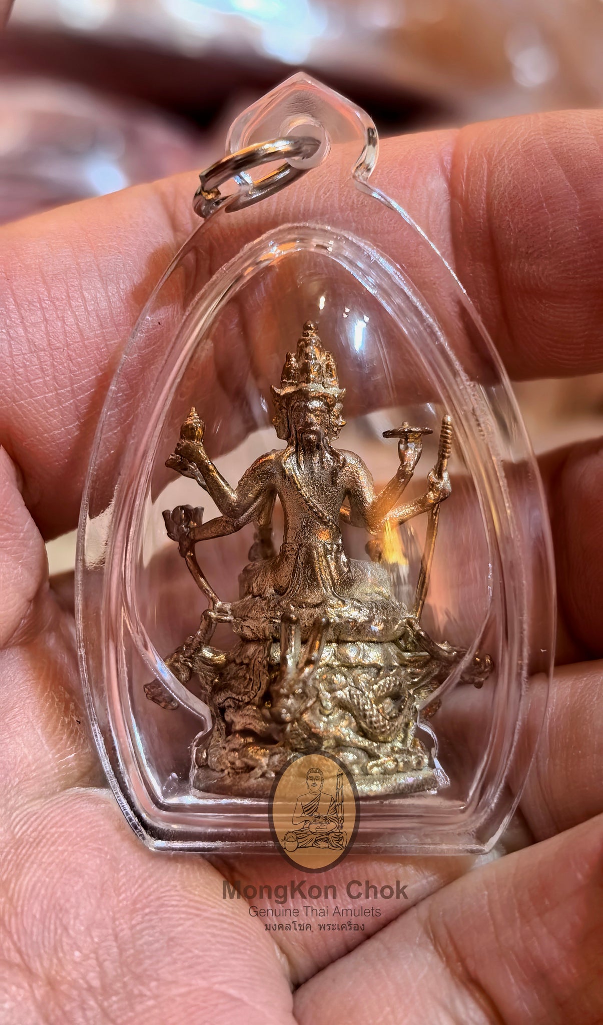 It beautifully features Maha Prom (Brahma) on Mangkon (Dragon). Inserted with Kring.